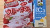 砂糖(国内製造)、豆乳(大豆を含む)、ストロベリー果汁、異性化液糖、粉あめ、植物油脂、ぶどう糖、果糖、エンドウたんぱく、食物繊維、食塩、しょうゆ(小麦を含む)/乳化剤、トレハロース、安定剤(増粘多糖類、セルロース、寒天)、酸味料、着色料(紅麹、野菜色素)、pH調整剤、香料