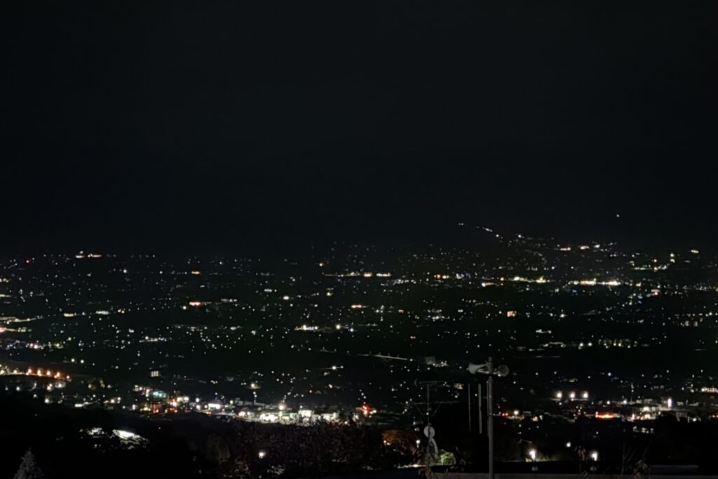 山の上にある公園なので、街の明かりが広がる景色を一望できて、昼とはまた違った山梨の魅力を感じられました。