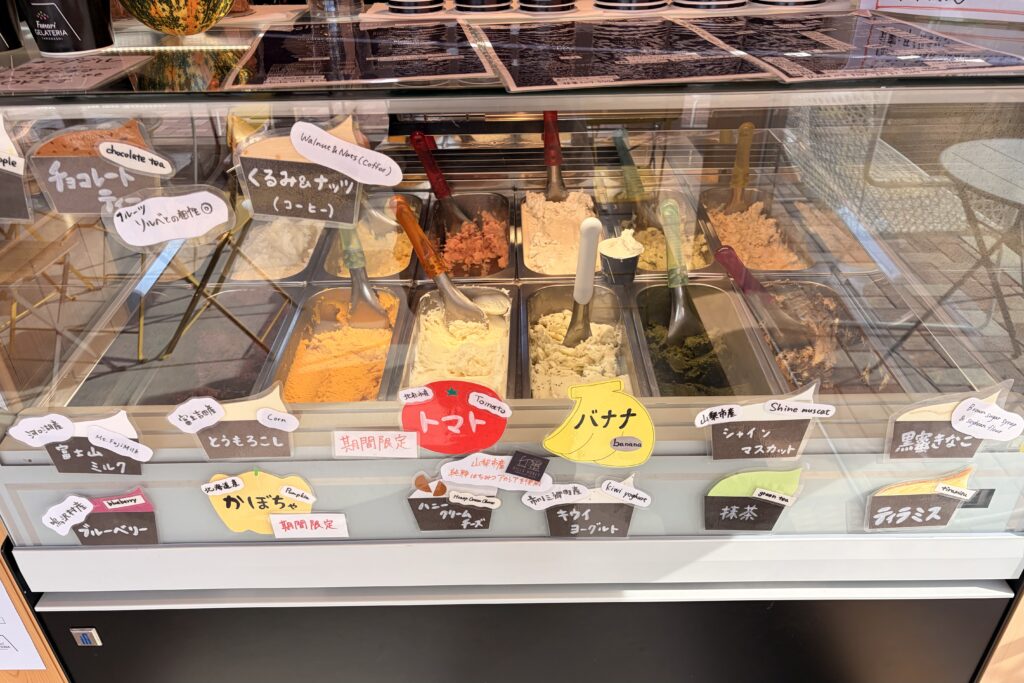 こちらは別日に訪れたのですが、ほうとう歩成の系列店、Funari GELATERIA(フナリジェラテリア)です。